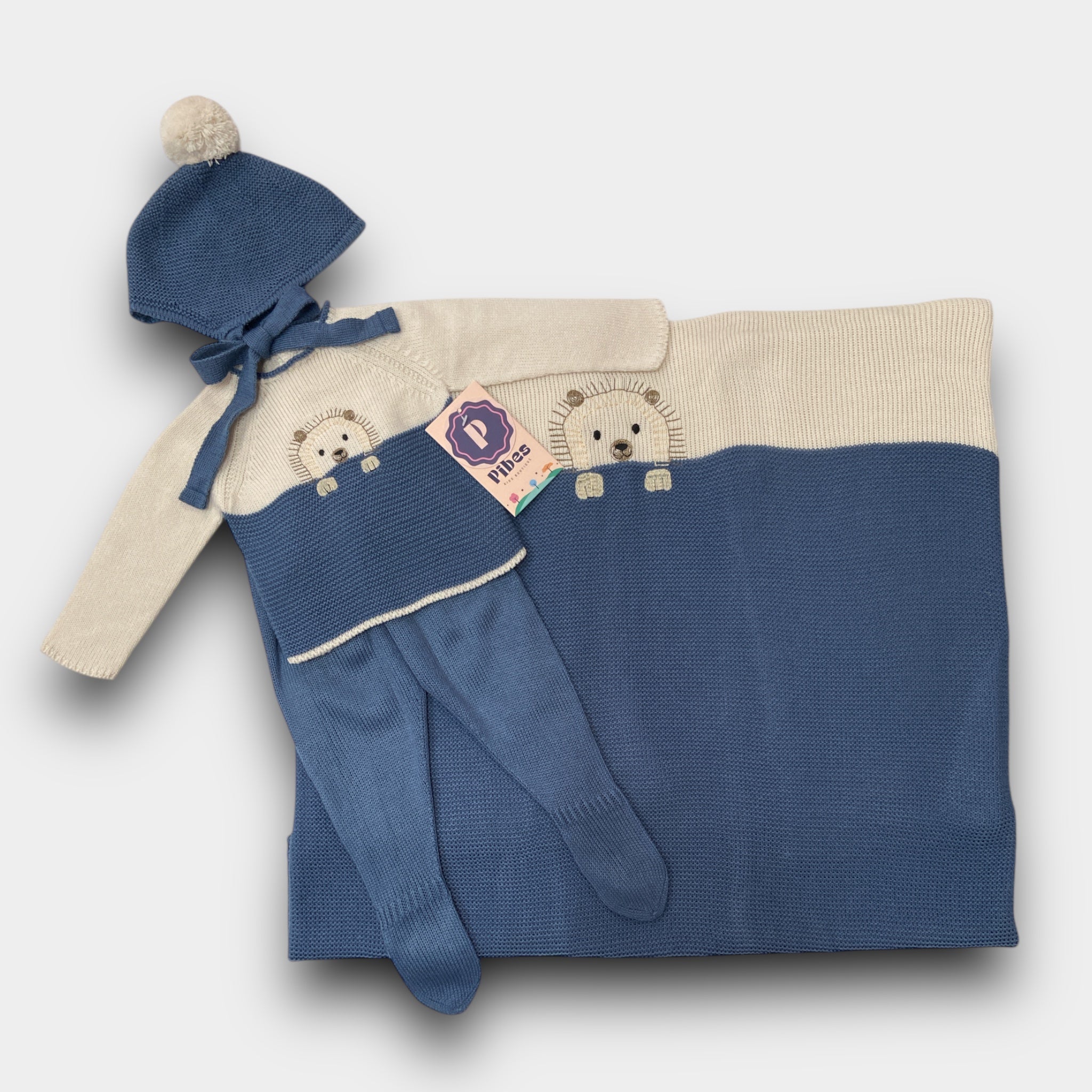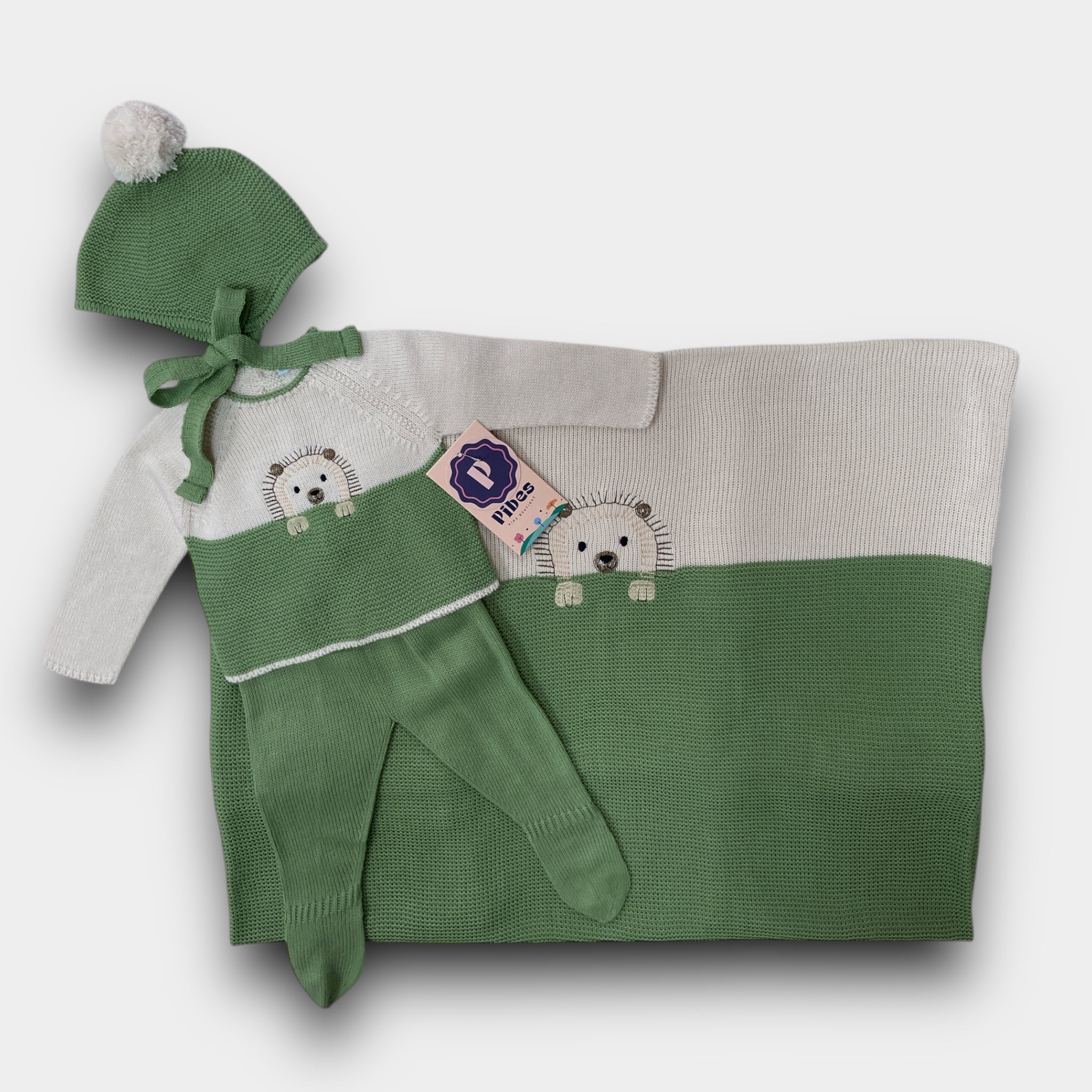 Conjunto Premie y Newborn. incluye camisa, pantalón, gorro, botines y sabanilla..