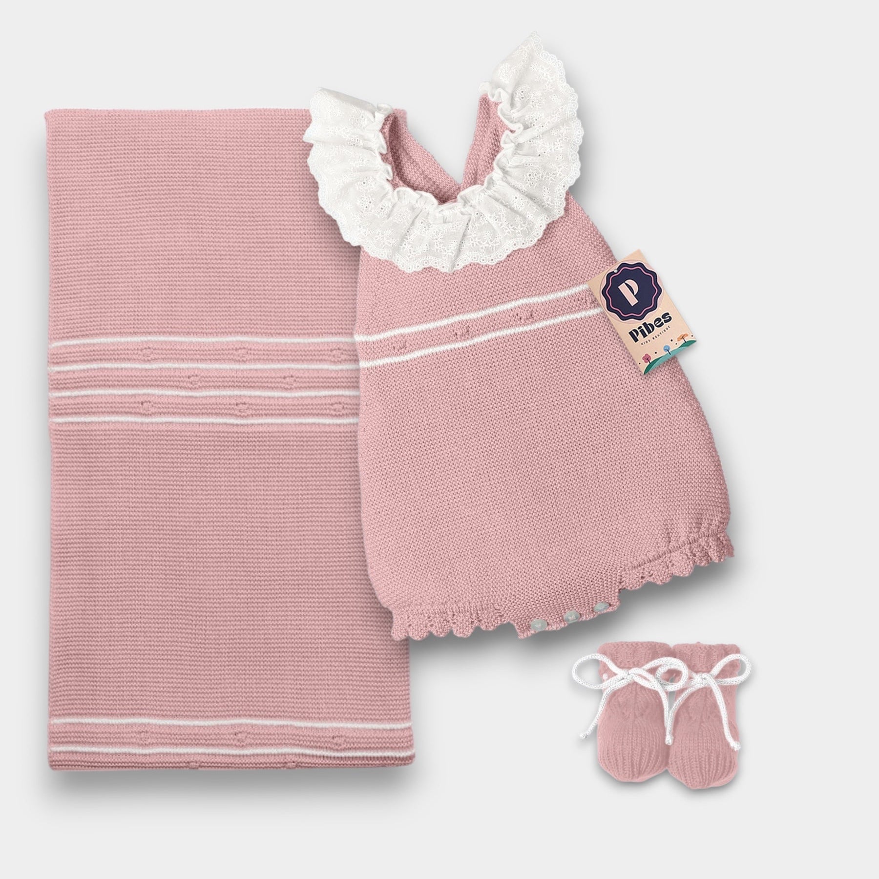 Sets NB y 1/3M llevan, gorro, botines y sabanilla