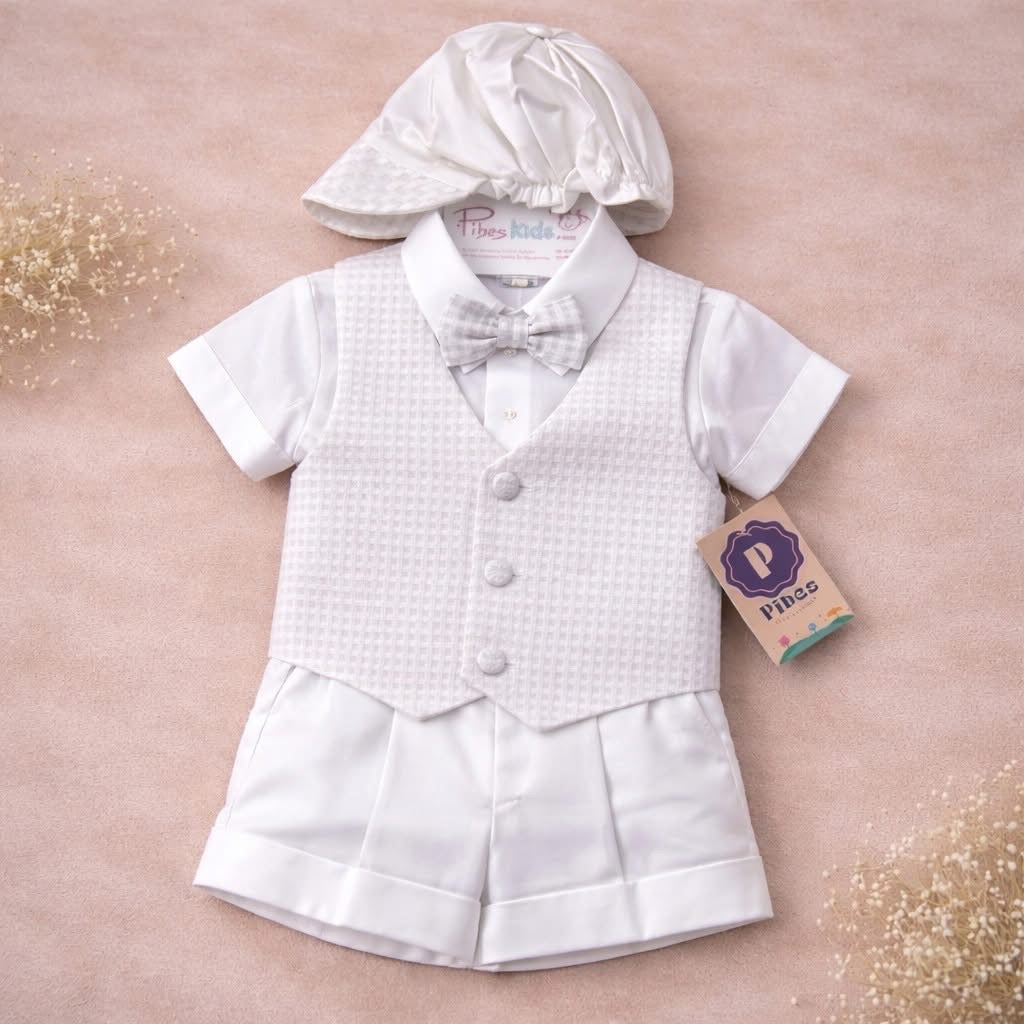 Camisa, Pantalón con elástico, chaleco, gorra y lazo tipo "clip on".