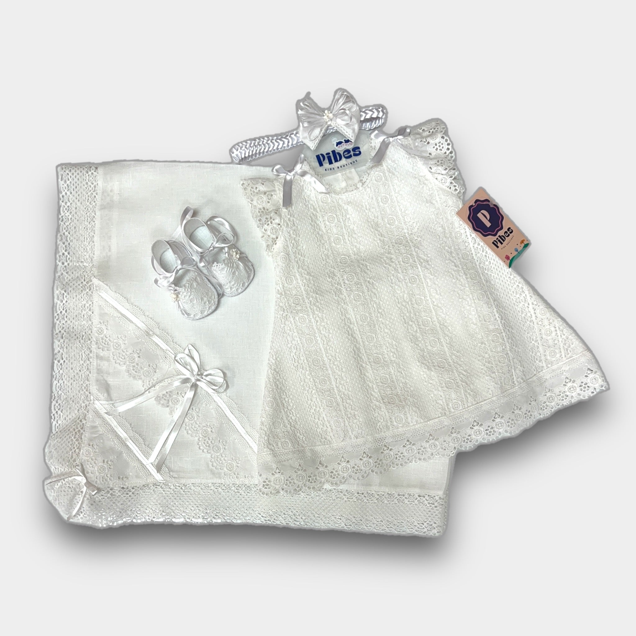 Incluye Vestido, Banda con lazo, Sabanilla y Sandalias