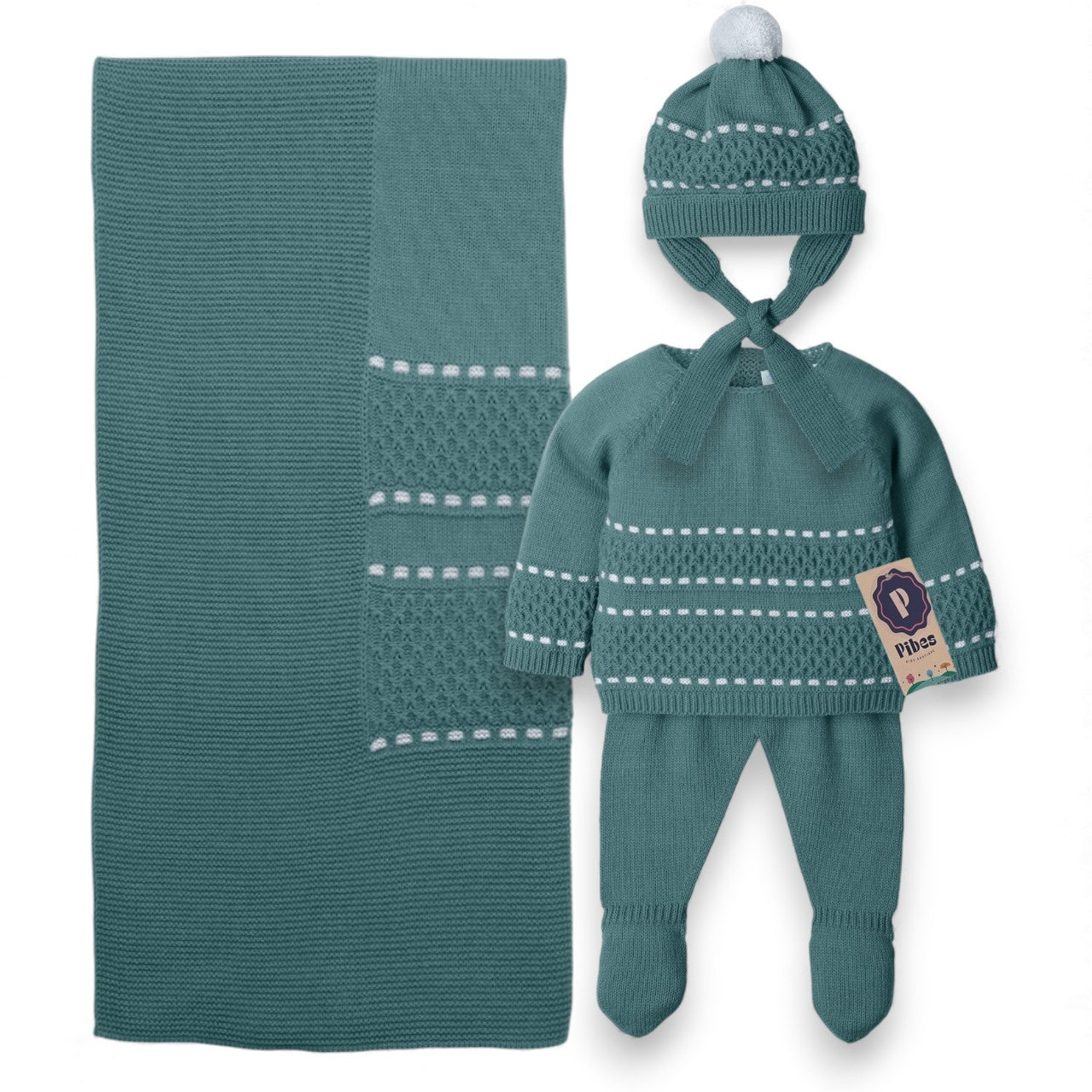 Incluye Camisa de manga larga, pantalón largo, gorro y sabanilla.