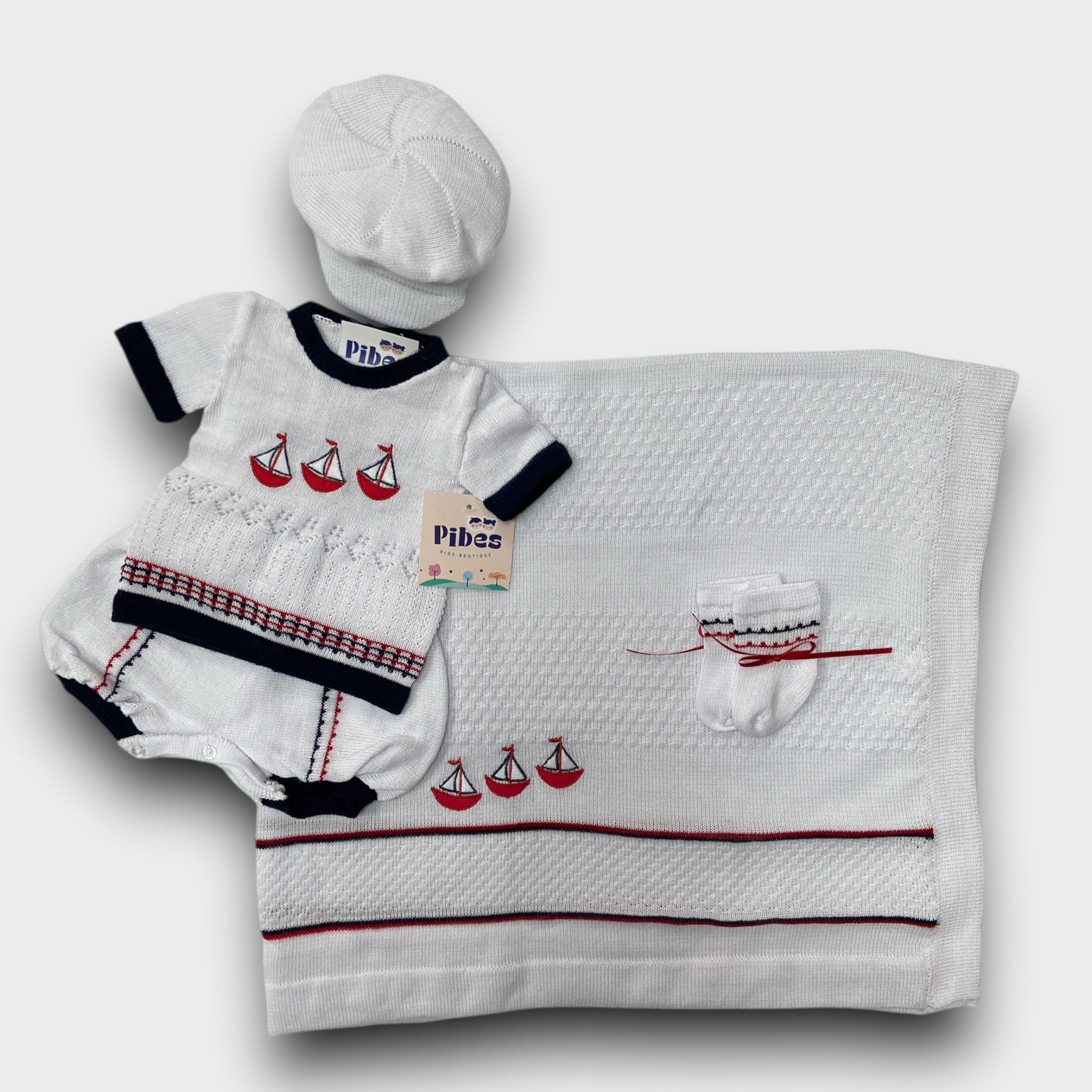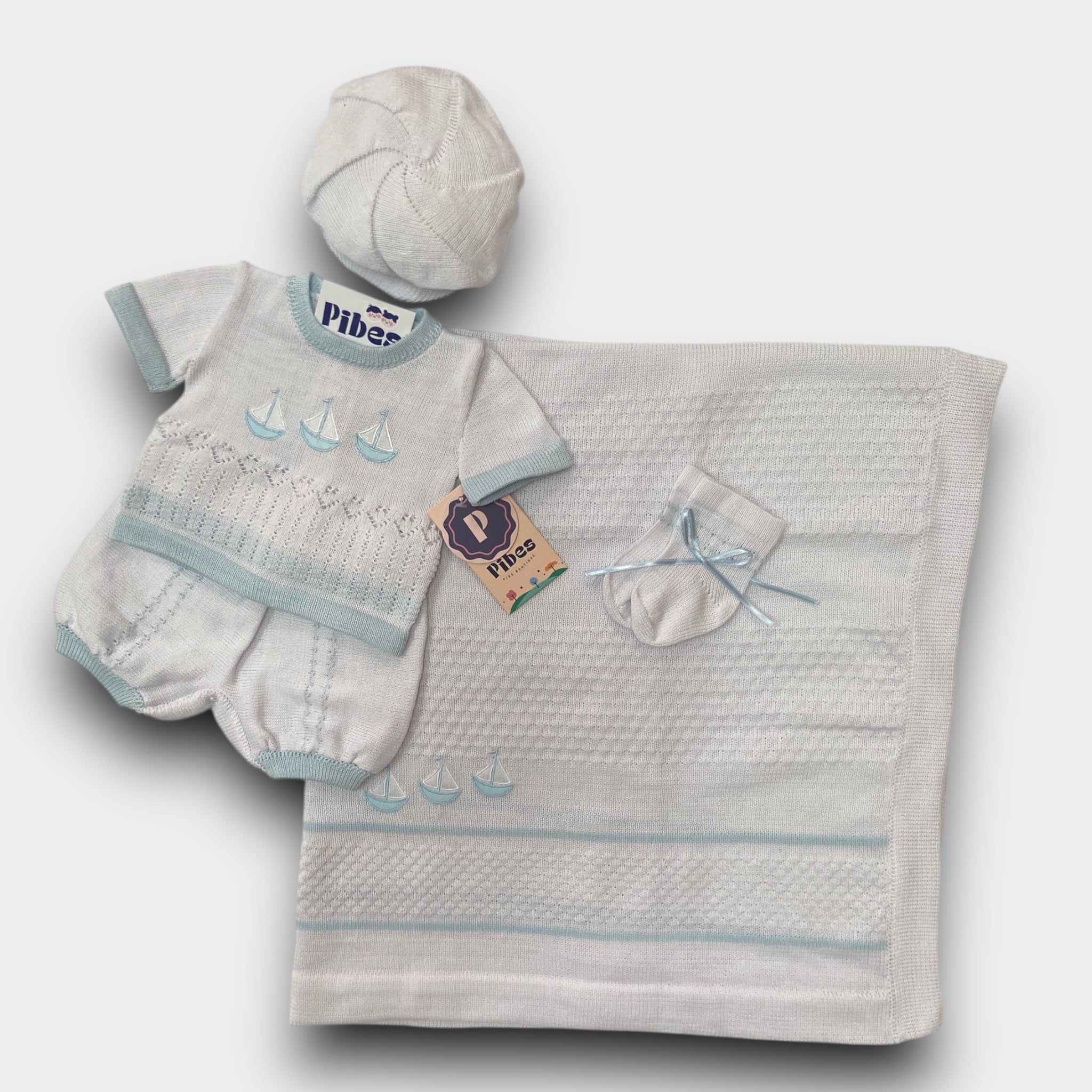 Set de camisa, pantalón con sabanilla, gorro, y medias