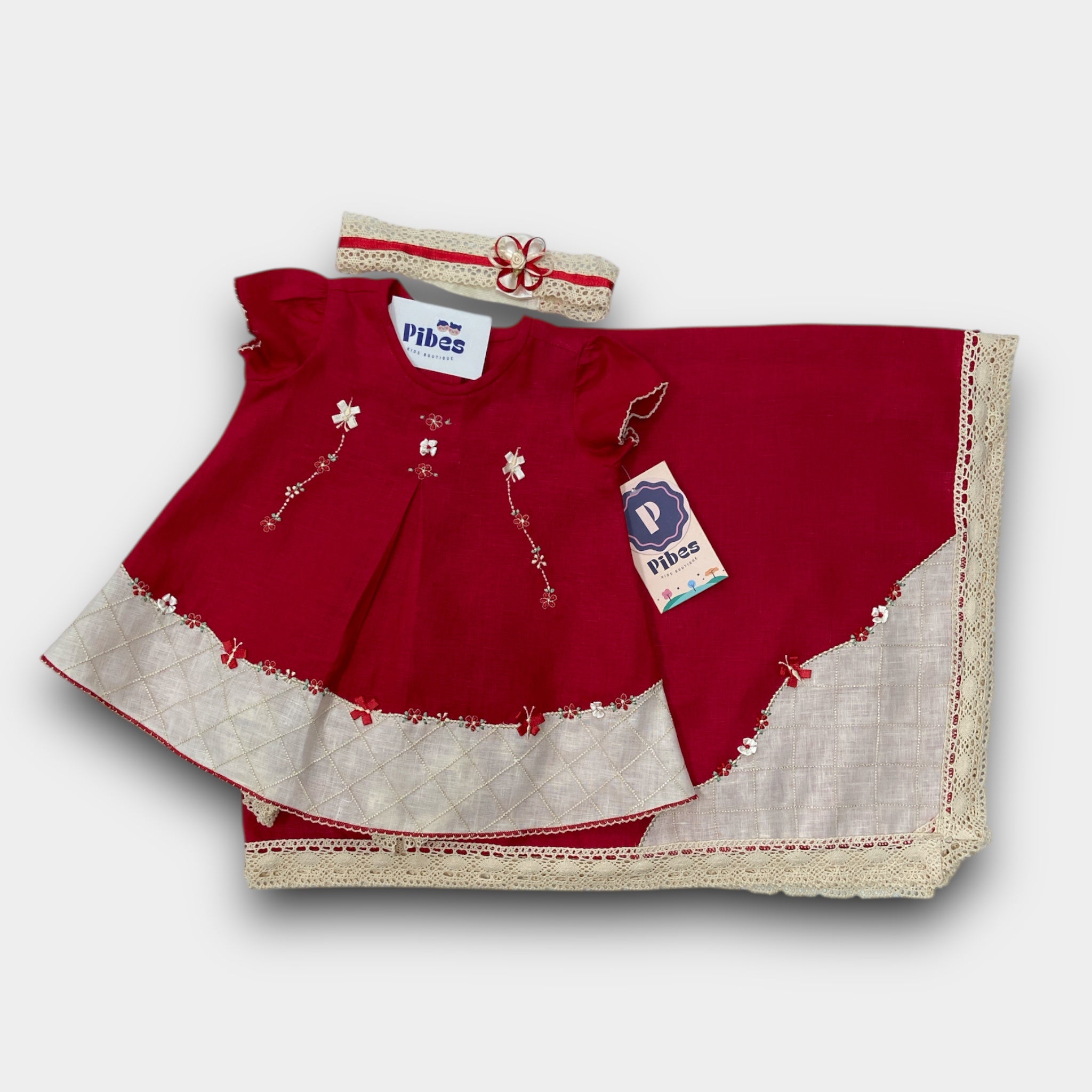 Vestido de estopilla con mundillo Español.