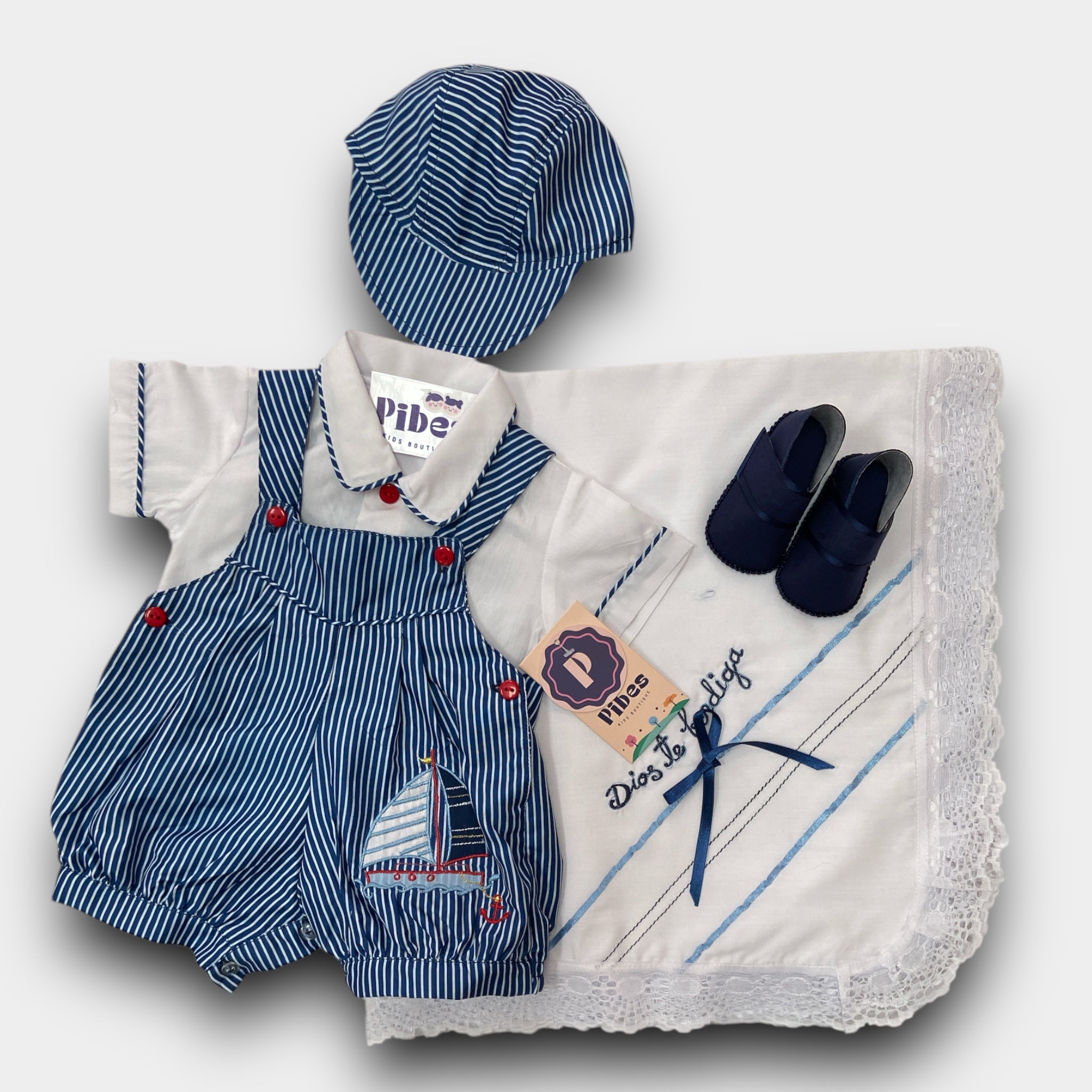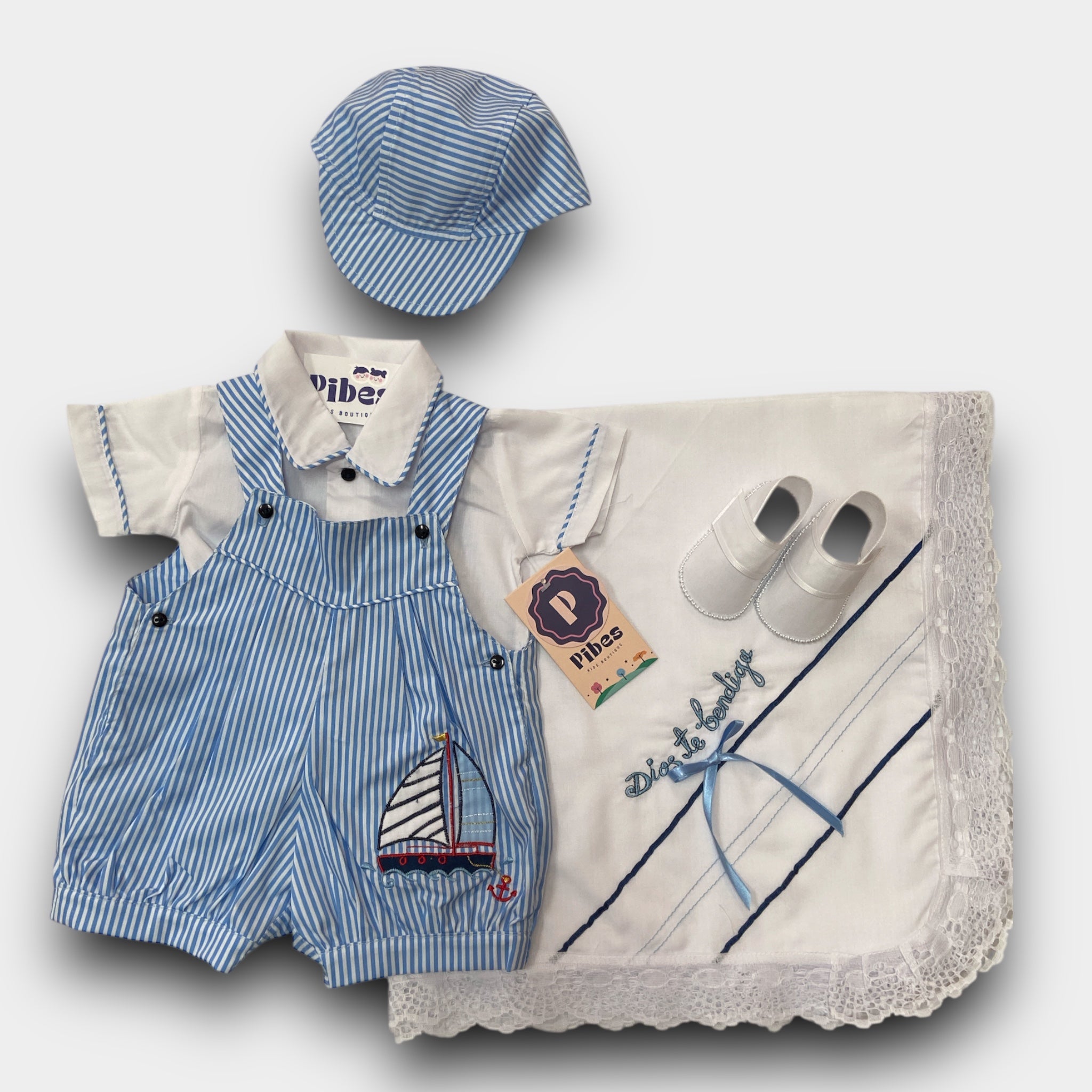 Incluye: Mameluco,Camisa, Gorro, Sabanilla y Zapatos.